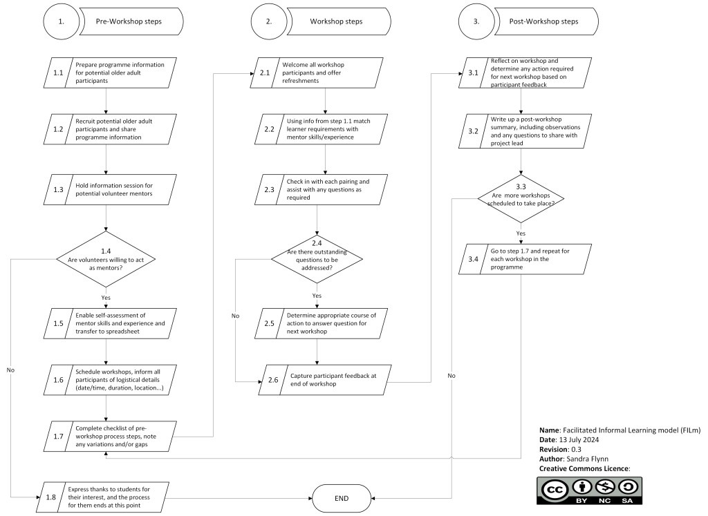 The final step was to add the flowchart label information together with an appropriate Creative Commons licence. The licence I tend to use as default is CC-BY-NC-SA and allows me to obtain credit for my work that others may use (BY), but not for commercial purposes (NC). They may however build upon my work, remix or adapt it providing they use the same licence (SA). Copy/pasting it here: This work is licensed under CC BY-NC-SA 4.0 . For assistance in selecting an appropriate licence of your own, here is a very helpful chooser: https://chooser-beta.creativecommons.org/